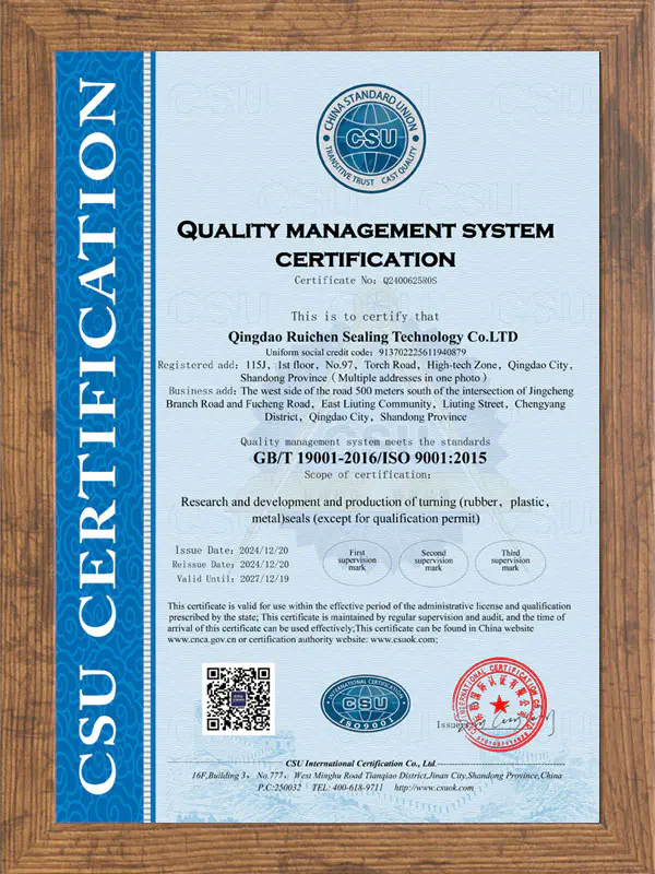 ★ W kwietniu 2018 r. Stało się ono doskonałym przedsiębiorstwem CCTV Enterplise Showcase Enterprise. W październiku film fabularny Qingdao Ruichen Sealing Technology Co., Ltd. „Explorers in„ Seal ”” na starym kanale CCTV i platformie internetowej. W tym samym miesiącu przekazał certyfikat międzynarodowego systemu jakości ISO9001.