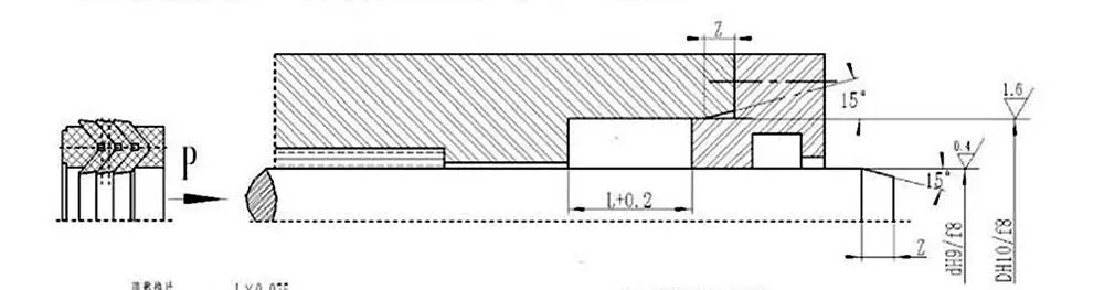 Uszczelki w kształcie litery V można regulować w wymiarze osiowym poprzez regulację uszczelki w celu uzyskania optymalnej szczelności i tarcia. Początkowe zużycie po długotrwałej eksploatacji można wydłużyć poprzez regulację wymiaru osiowego. Zalecana konstrukcja regulowanego wymiaru osiowego wnęki uszczelnienia to 1,025L, z zakresem regulacji 7,5%L.